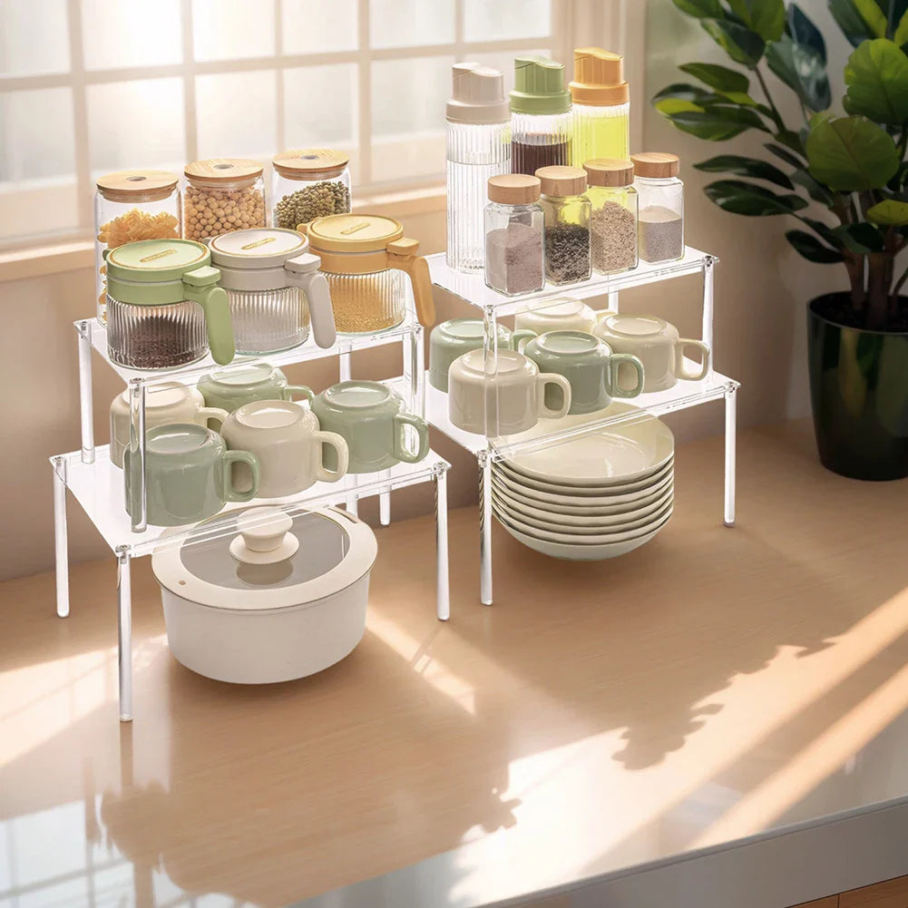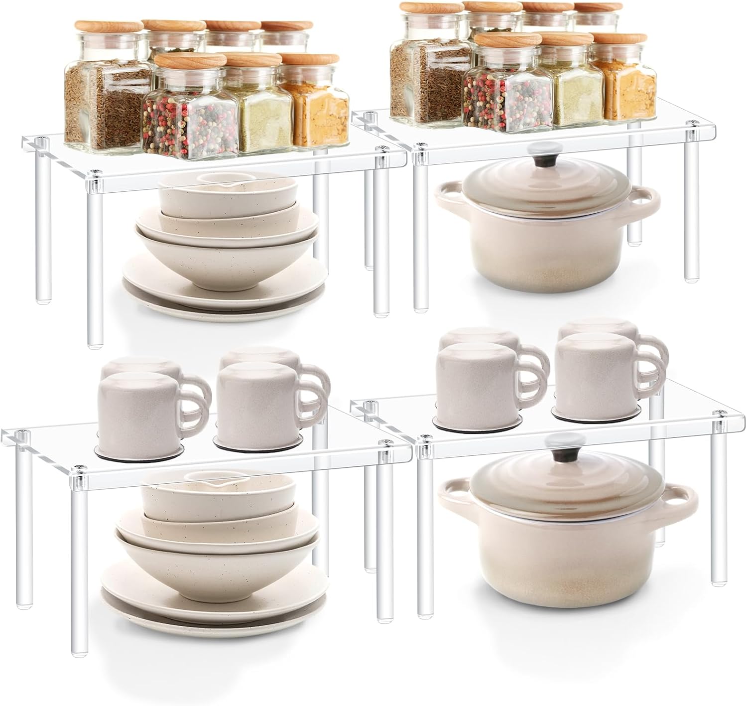 4-Pack Acrylic Cabinet Shelf Risers – Kitchen Counter Organizer Set