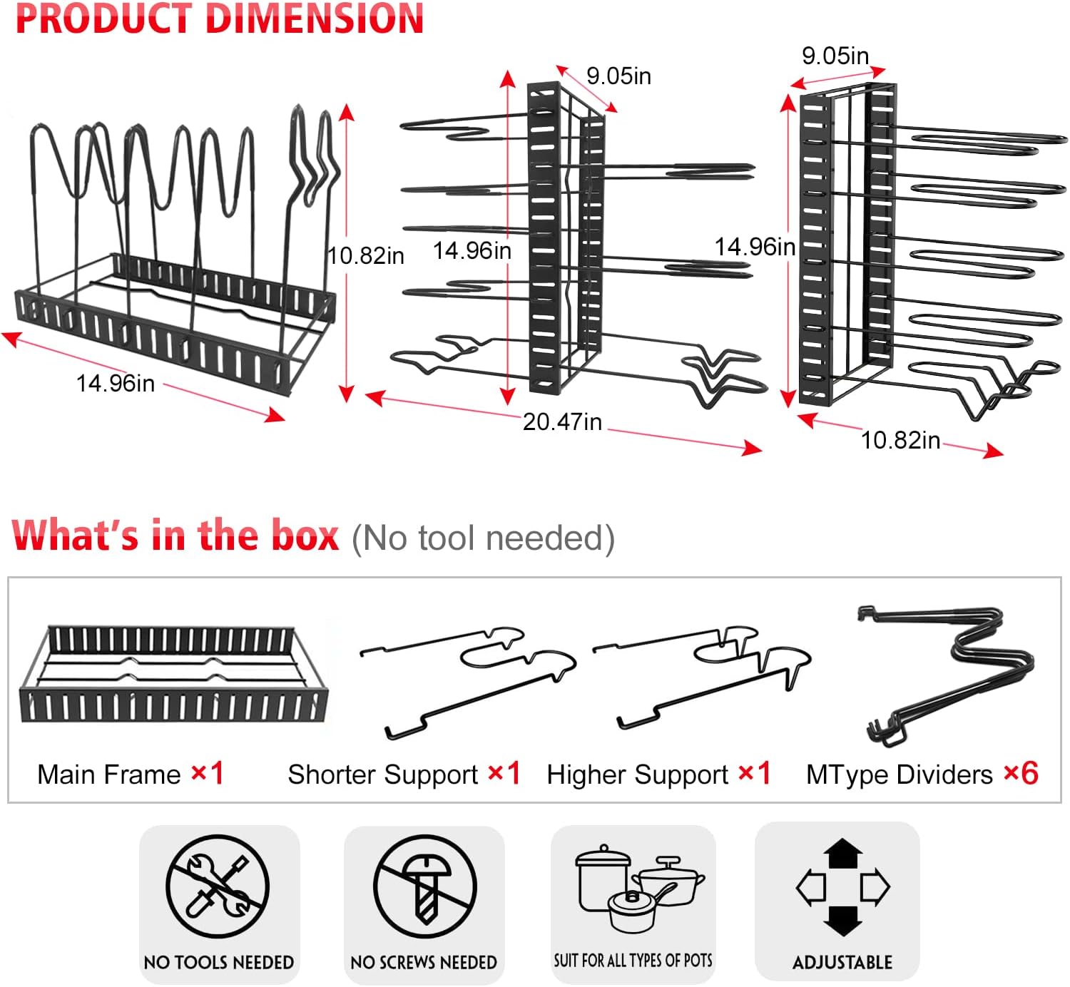 8-Tier Pot and Pan Organizer Rack – Adjustable Cookware Stand with Pot Lid Holders
