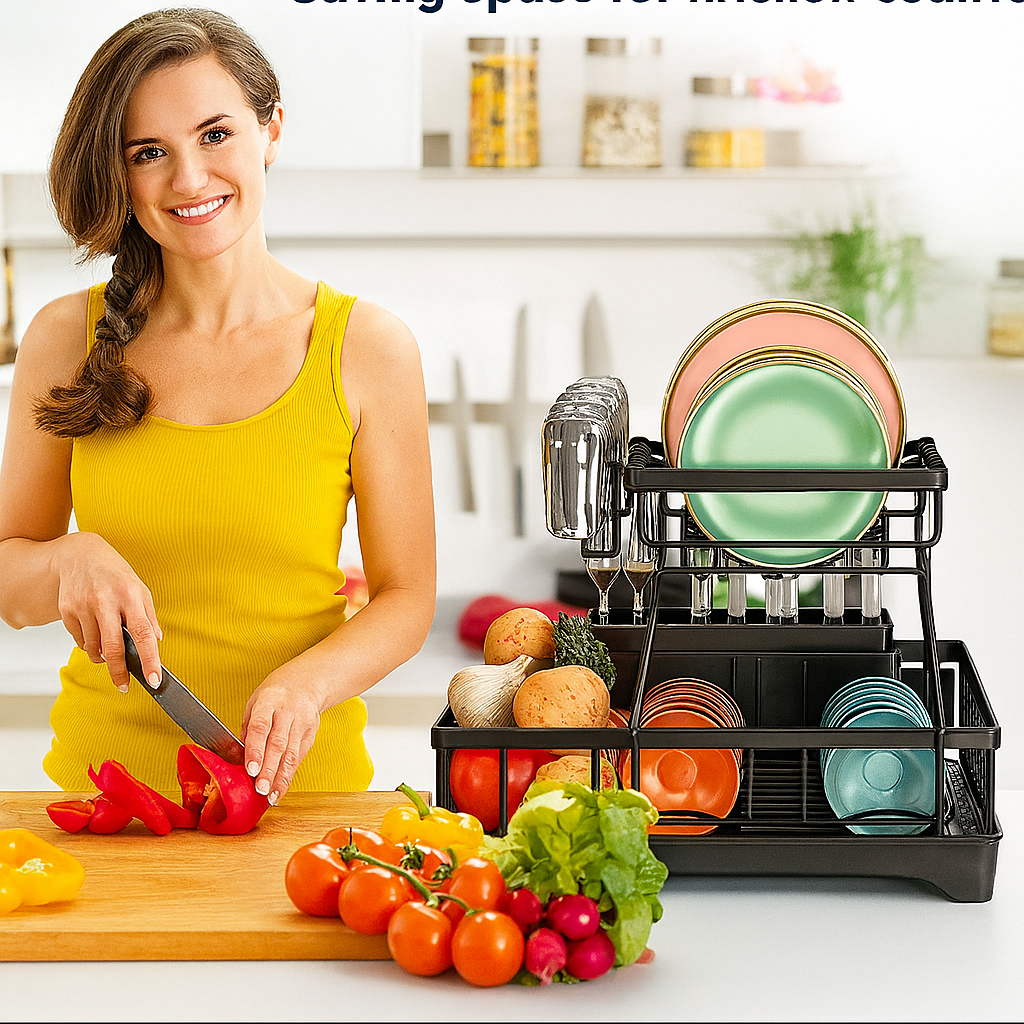 Large Capacity Dish Drying Rack - No Tools, Smart Drain Design